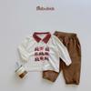 SB2104- bộ dài tay bo gấu bé trai, phối ngực in động vật, phối gấu quần in chữ
