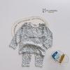 SB2213- bộ dài tay phối ngực đính nơ, quần in thỏ gấu quần