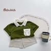 SB2232- bộ polo diễu chỉ nổi túi ngực phối quần gấu, chữ số
