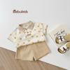 SB2122- bộ polo phối cổ tay nẹp, in họa tiết ngôi nhà, bánh quy