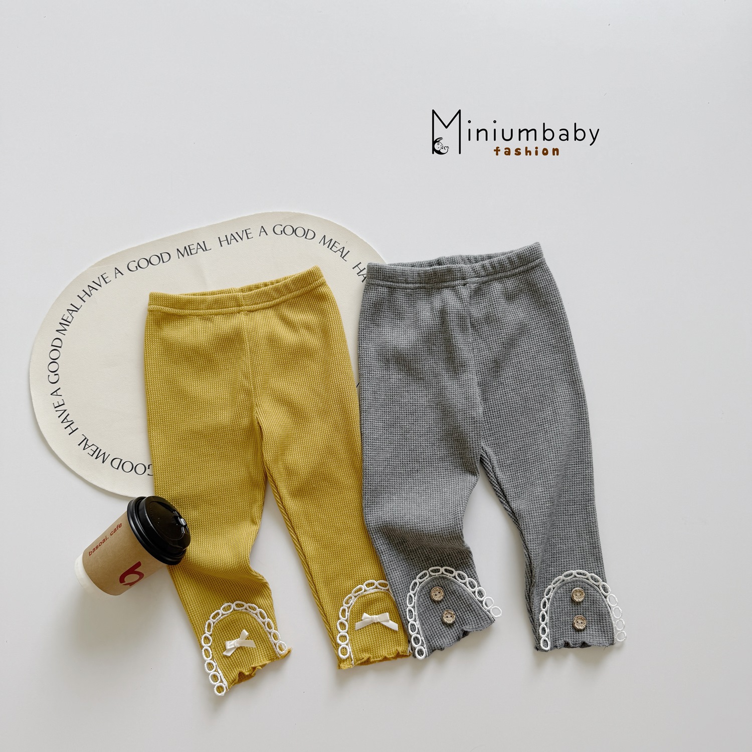 QD2141- quần dài bèo gấu phối ren đính nơ, cúc hoa