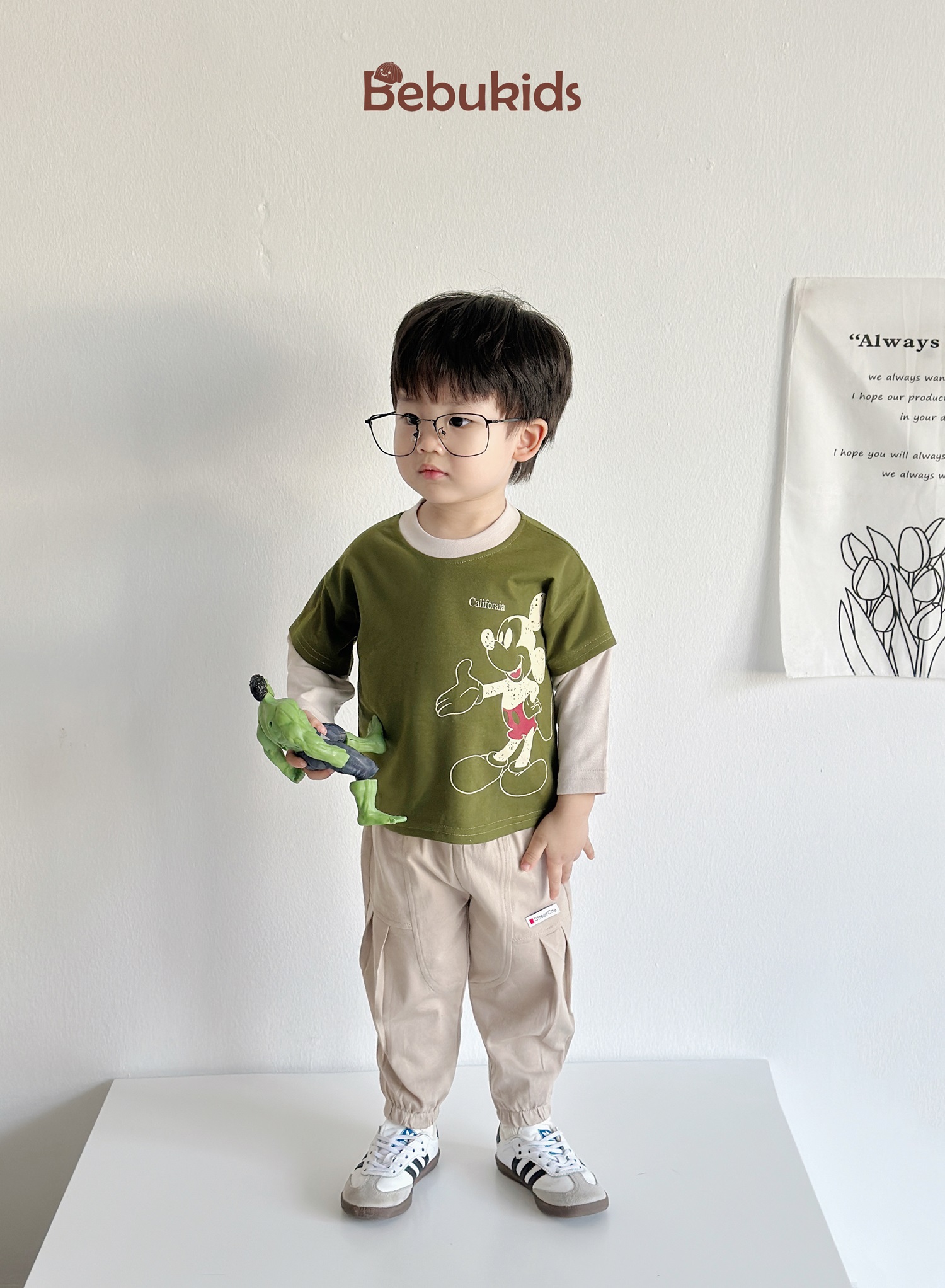 SB2171-bộ dài tay phối cổ, tay, thân in mickey