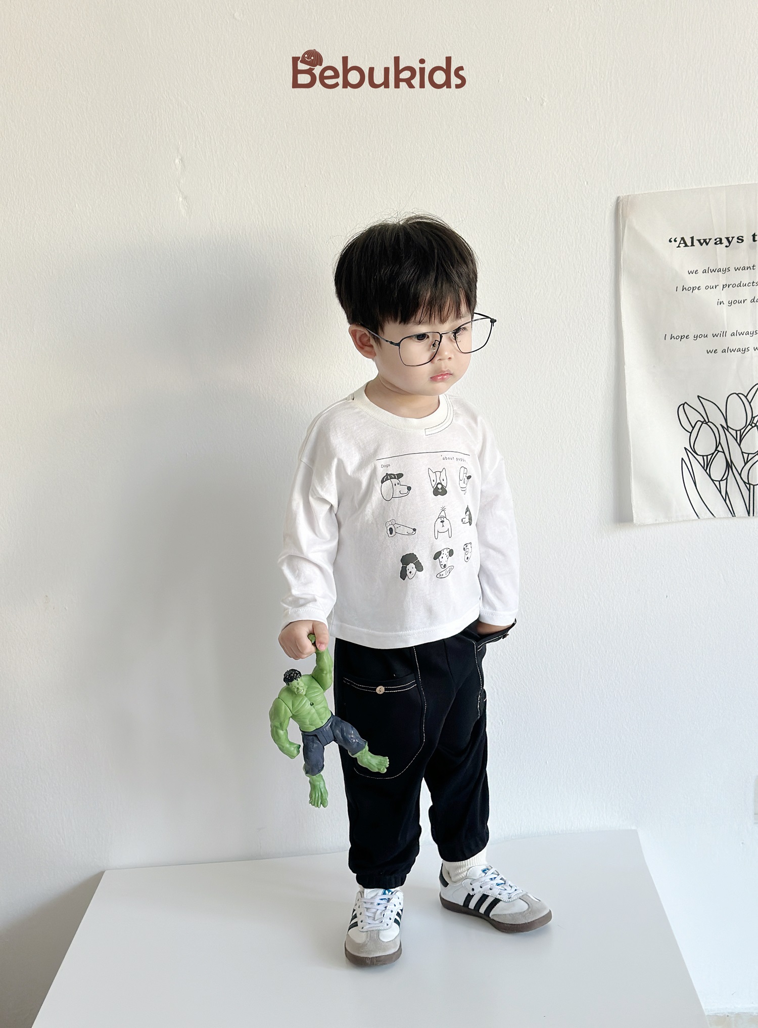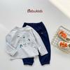 SB2188- bộ dài tay in thú phối quàn diễu chỉ nổi túi đính cúc gấu bo chun