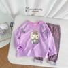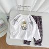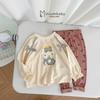 SB2213- bộ dài tay phối ngực đính nơ, quần in thỏ gấu quần