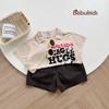 SB2265- bộ cộc phối cổ, 1 bên sườn tay áo, in chữ every thing is....