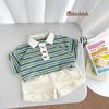 SB2232- bộ polo diễu chỉ nổi túi ngực phối quần gấu, chữ số