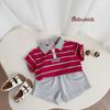 SB2232- bộ polo diễu chỉ nổi túi ngực phối quần gấu, chữ số