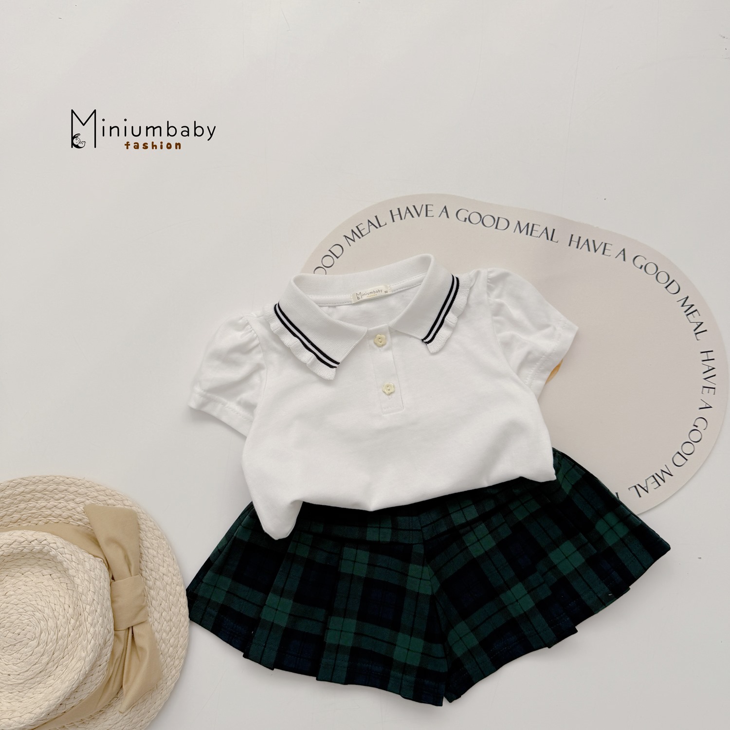 SB2290- bộ cộc tay phối kẻ cổ, quần váy kẻ