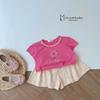 SB2438- bộ cộc tay cổ sen in thỏ đính tai thỏ kẻ ở cổ phối quần váy kẻ