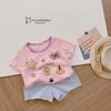 SB2285- bộ bé gái cộc tay in cổ thỏ phối quần tim
