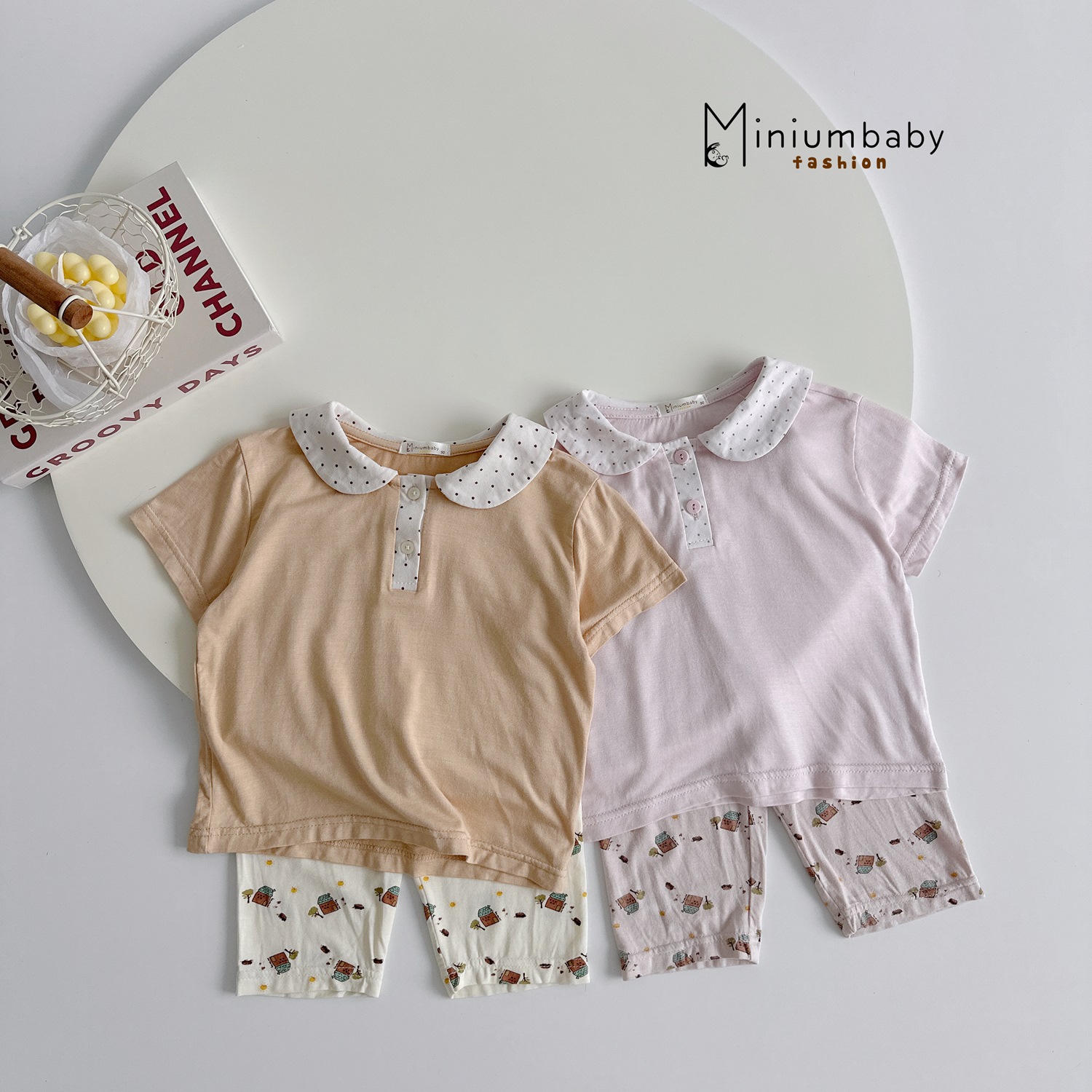 SB2392- bộ cổ sen quần dài in ngôi nhà. cổ bi