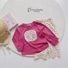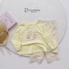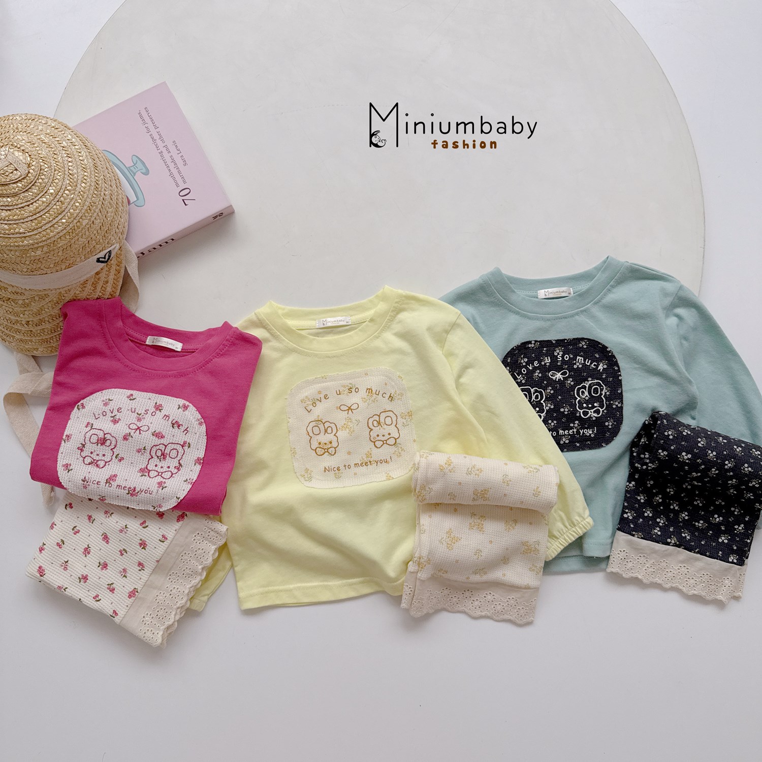 SB2416-bộ dài tay bé gái đáp vuông in thỏ, nơ, hoa phối quần hoa ren gấu