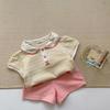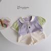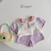 SB2437- bộ cộc cổ sen phối cổ, tay đính logo mèo dưới nẹp