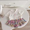 SB2439- bộ cổ sen phối cổ, in hình ở nẹp đính nơ, phối quần váy