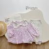 SB2453- bộ dài tay babydoll hoa cổ sen in thỏ hoa, quần trơn đính tai thỏ