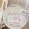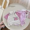 Bộ cộc tay bé gái cổ zen, in họa tiết thân trước, quần phối beò gấu