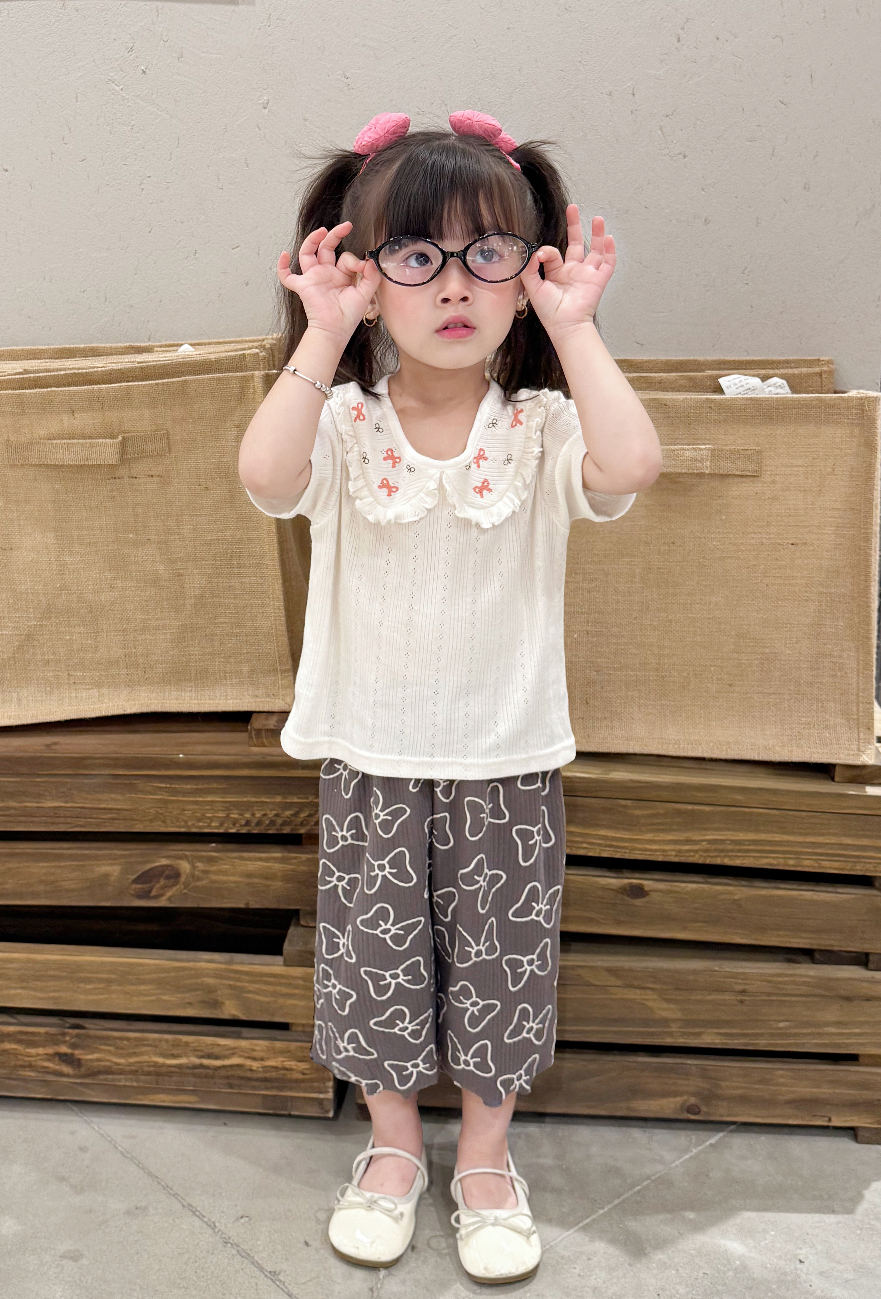 Bộ cổ sen bèo cổ in nơ phối quần dài