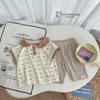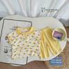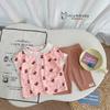 Bộ cộc tay bé gái cổ zen, in họa tiết thân trước, quần phối beò gấu