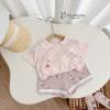 Bộ cộc tay cổ sen đính nơ, ren tay 2 tầng, quần tim bi màu