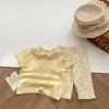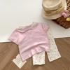 Bộ cộc tay bé gái cổ zen, in họa tiết thân trước, quần phối beò gấu