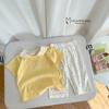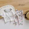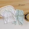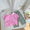 Bộ cộc tay bé gái cổ zen, in họa tiết thân trước, quần phối beò gấu