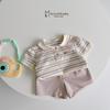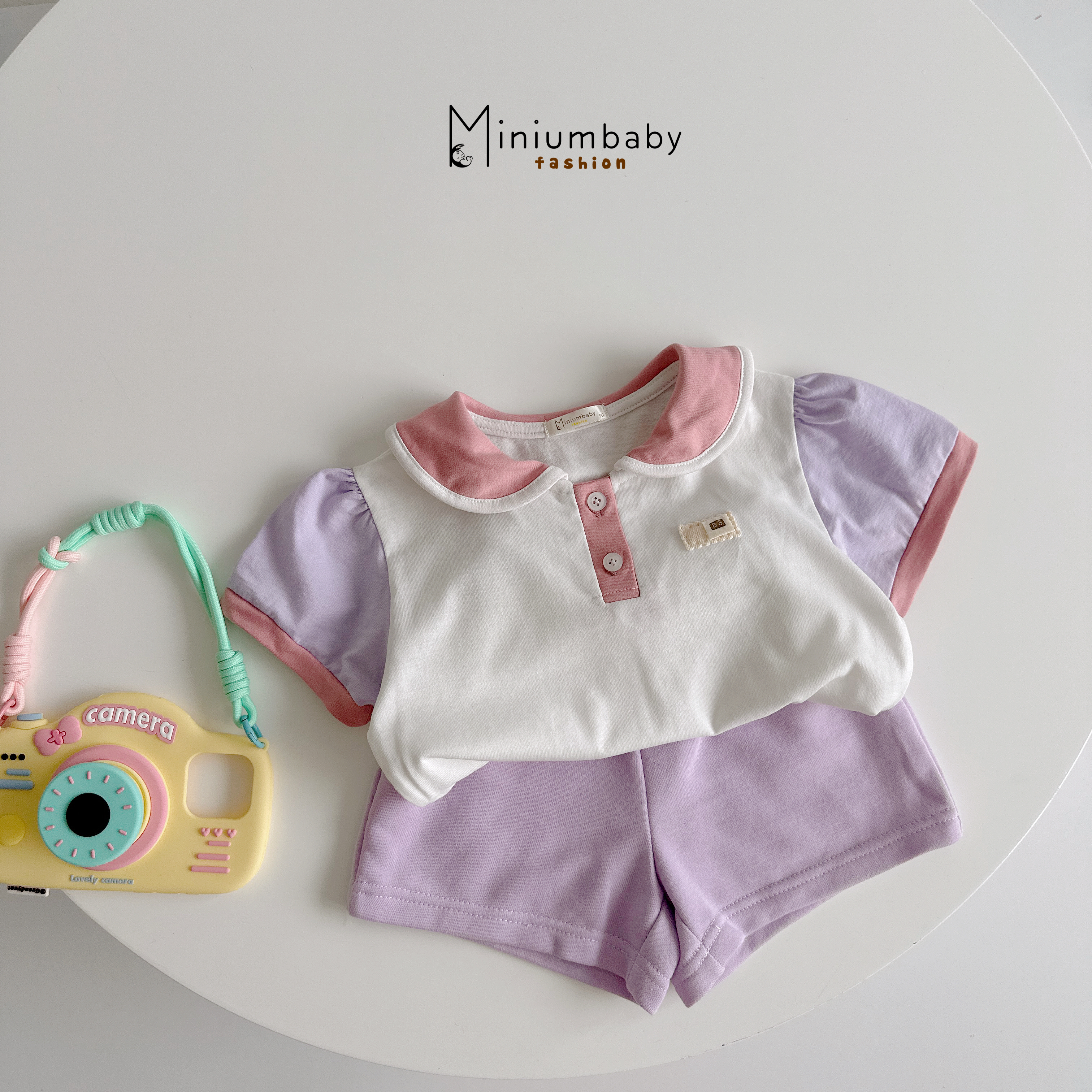 Bộ cộc cổ sen phối cổ, tay đính logo mèo dưới nẹp