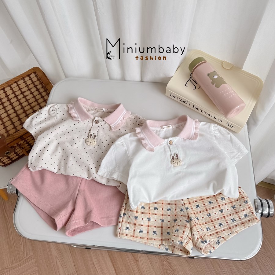 Bộ cộc quần đùi bé gái có cổ