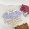 Bộ cổ sen phối ren in thỏ, hoa quần đùi