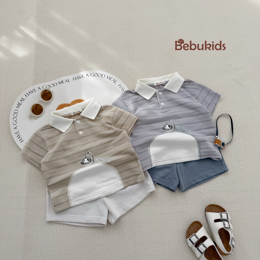 Bộ cộc quần đùi bé trai có cổ