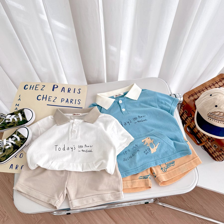 Bộ cộc quần đùi bé trai có cổ