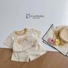 Bộ cộc quần đùi kẻ in cún, chữ woofwoof