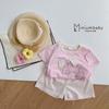 Bộ bé gái cộc tay in cổ thỏ phối quần tim