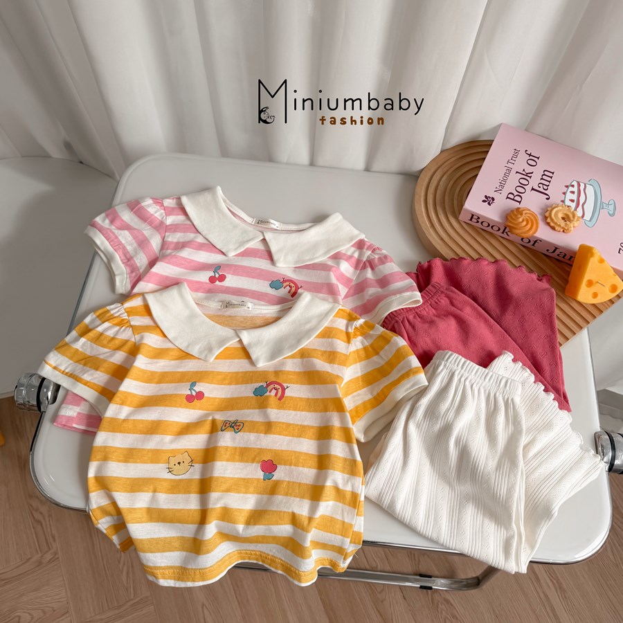 Bộ cộc quần đùi có cổ bé gái