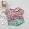 Bộ cổ sen phối ren in thỏ, hoa quần đùi