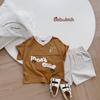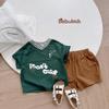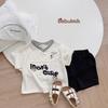 Bộ cộc tay bé trai in chữ where are you going, cún 2 bên vài, lé vai