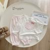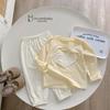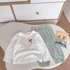 SB2216- bộ dài tay bé gái cổ kẹp bèo, nẹp thân trước in nơ thỏ phối quần kẻ