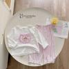 SB2216- bộ dài tay bé gái cổ kẹp bèo, nẹp thân trước in nơ thỏ phối quần kẻ