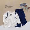 SB2213- bộ dài tay phối ngực đính nơ, quần in thỏ gấu quần