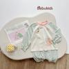 SB2213- bộ dài tay phối ngực đính nơ, quần in thỏ gấu quần