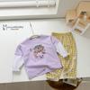 Bộ dài tay bé gái phối tay kẻ in cún friends fun phối quần kẻ