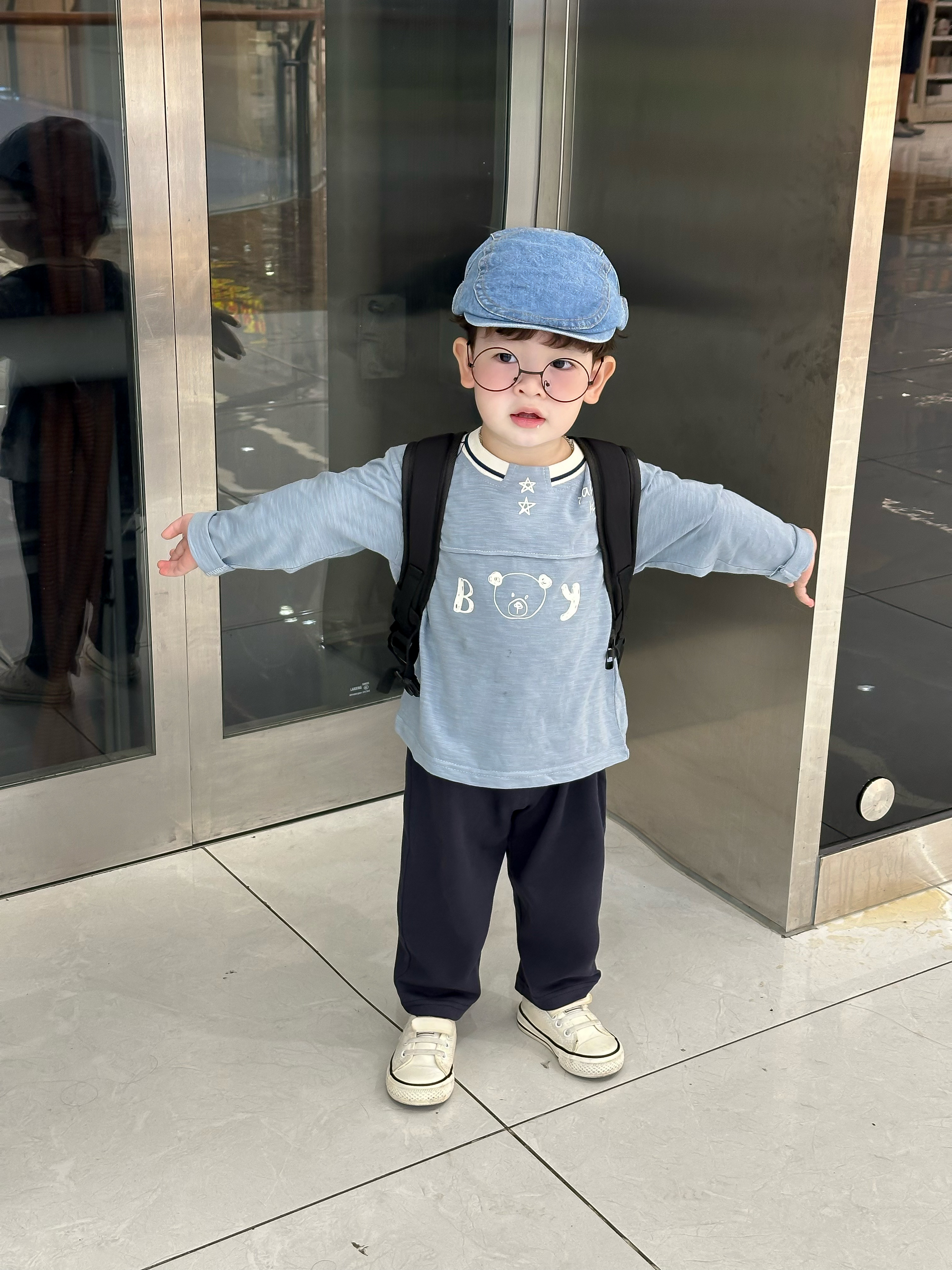 Bộ dài tay bé trai in boy gấu, fashion kids
