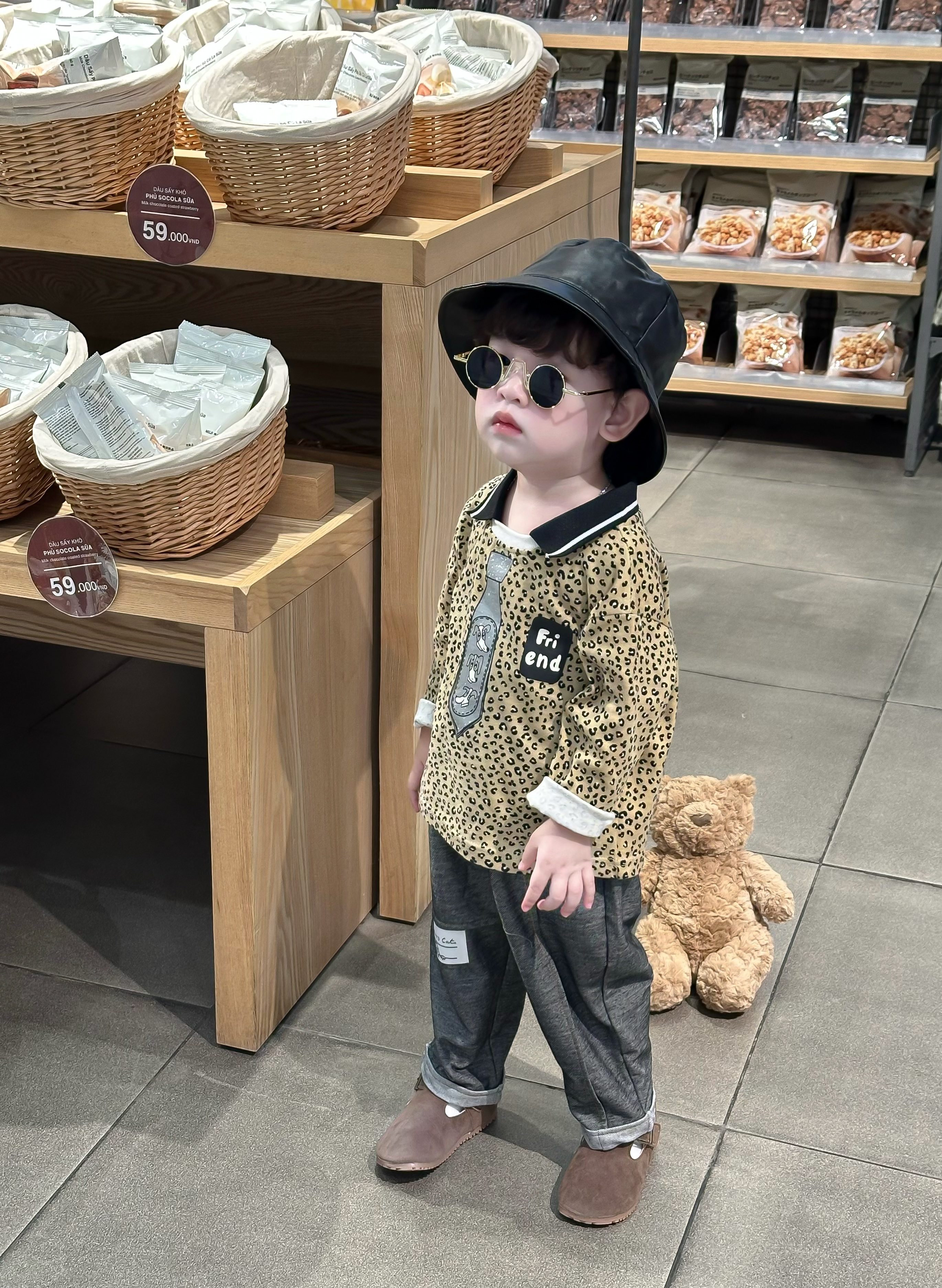 Bộ dài tay bo gấu bé trai, phối ngực in động vật, phối gấu quần in chữ