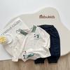 Bộ dài tay bé trai phối cổ, tay kẻ in voi,chữ