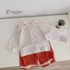 Bộ dài tay babydoll bé gái phối cổ in họa tiết phối quần trơn