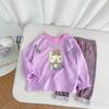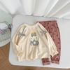 SB2213- bộ dài tay phối ngực đính nơ, quần in thỏ gấu quần