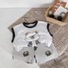 Bộ cộc tay phối lé vai, nách,túi ngực in chữ how are you