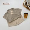 Bộ polo bé trai nẹp thân trước đính cúc in động vật