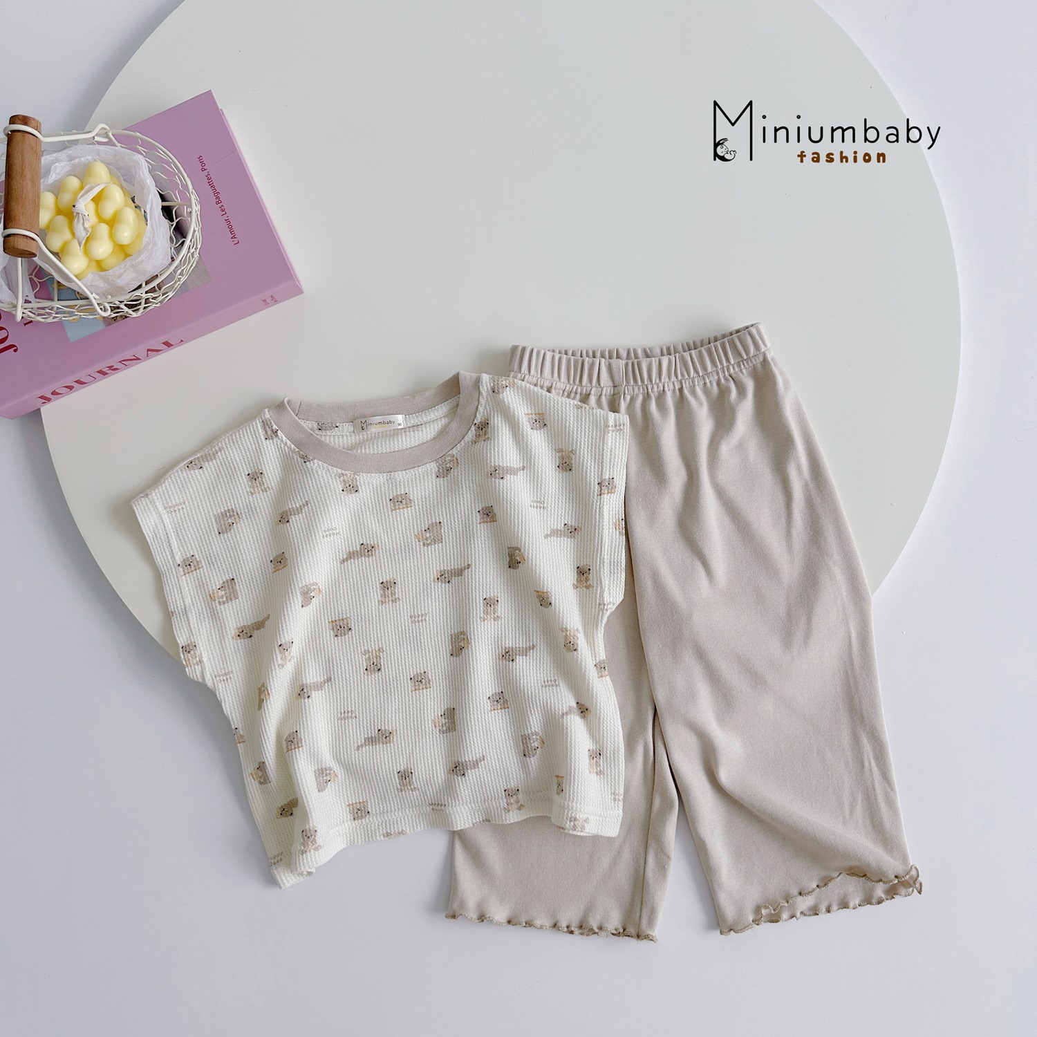 Bộ sát nách bé gái phối cổ quần màu trơn, áo in họa tiết