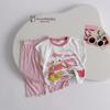 Bộ cộc tay quần lửng kẻ phối tay bi tim in bé gái, hoa, thỏ cổ